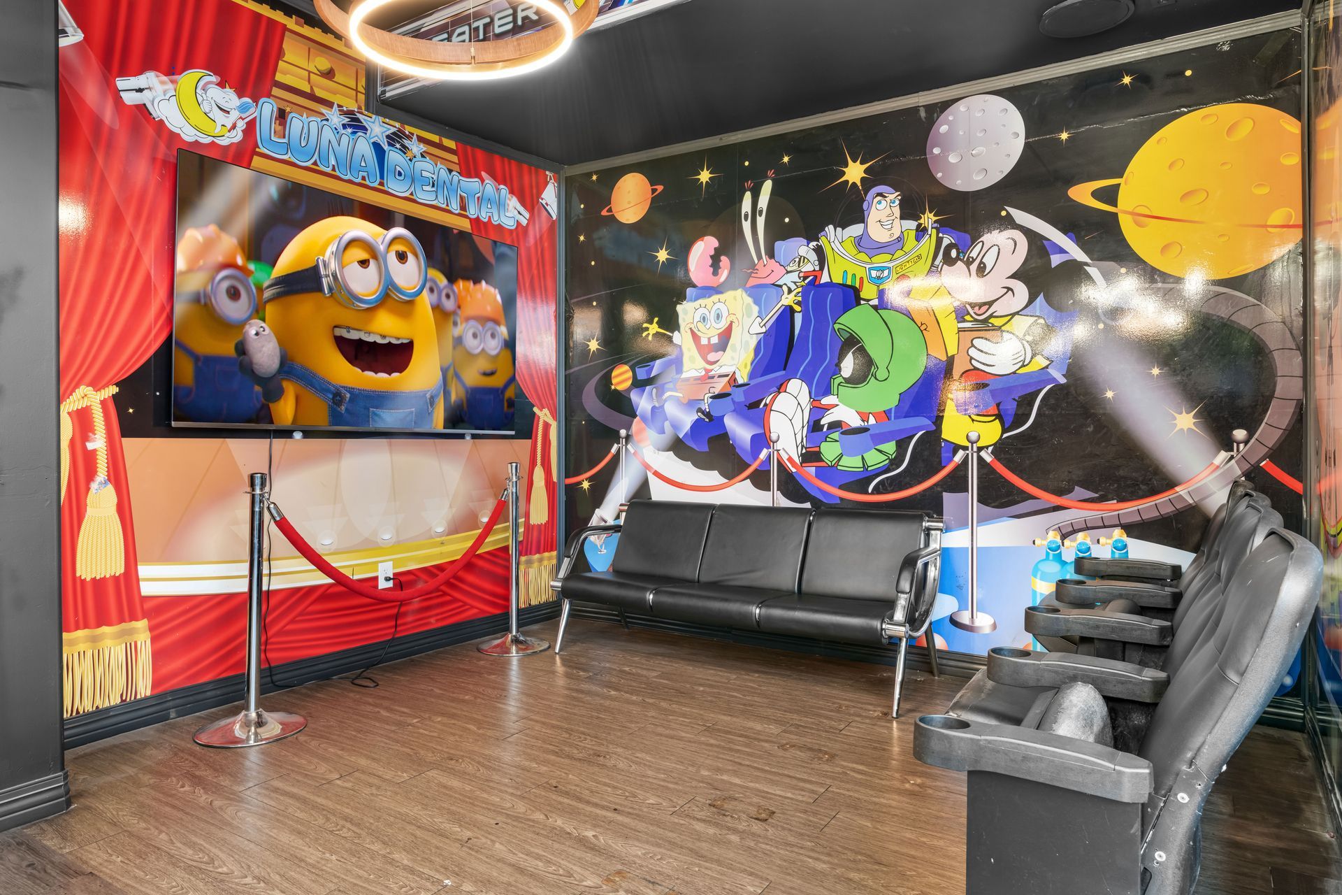 Experience our galaxy-themed dental paradise firsthand with an office tour. Traverse through our universe, from the reception area filled with superhero characters to the state-of-the-art treatment rooms. Every corner of our office is designed to transport you to a cosmic world, ensuring an unforgettable San Antonio Dentist experience.